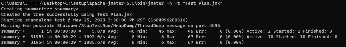 jmeter -n -t 설정 파일 -l 리포트 파일