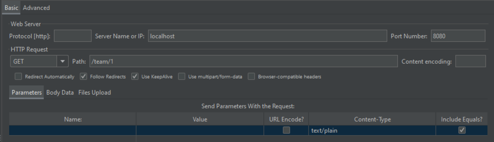 - 요청을 보낼 호스트, 포트, URI, 요청 본문(Body) 적기